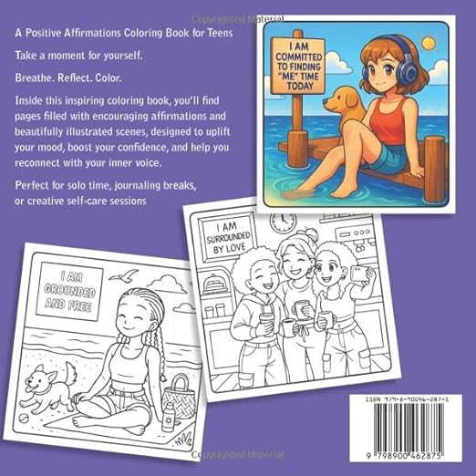 Designed especially for teen girls and young women, this coloring book features beautifully illustrated characters, cozy scenes, and calming affirmations like “I am growing every day,” “My voice matters,” and “I am enough.” Each page is an invitation to color your way into greater peace, confidence, and self-discovery.